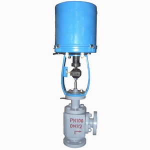 電動角形閥(fá)輸入由變送器送來的直流電流信號,經伺服放大器(qì)放大後驅動執行機構,產生(shēng)軸向推力,帶(dài)動調節閥動(dòng)作,從而(ér)引(yǐn)起介質流量的變化,以達到調(diào)節(jiē)係統(tǒng)中各種熱工參(cān)數的目的
