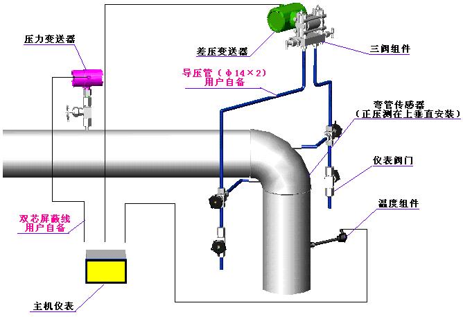 2. 測量蒸汽彎管流量計係統(tǒng)構成