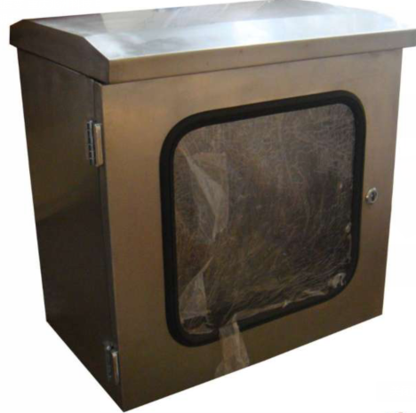 2、箱體分上箱體、下箱(xiāng)體(為斜麵式吻合,吻合麵上下(xià)端部箱體為弧型)。上下箱體用不鏽鋼合葉連(lián)接,由橡塑條密封,下端安裝不鏽鋼吊扣以壓緊。前開門帶觀察窗,有傾斜式防(fáng)雨頂蓋(gài),門與箱(xiāng)體之間采用防濺結構,能防雨防塵,適(shì)與室內外安裝;