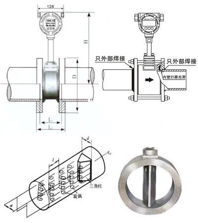 | 、五(wǔ).渦街流量計安裝示意圖: | ||||||||||||