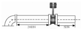 | 4.同一平麵兩個(gè)彎管的安裝 如果流(liú)量計的前端有兩個90°彎頭,要保證流量計的前(qián)直(zhí)管段≥20D,後直(zhí)管(guǎn)段≥5D | | |||||||||||